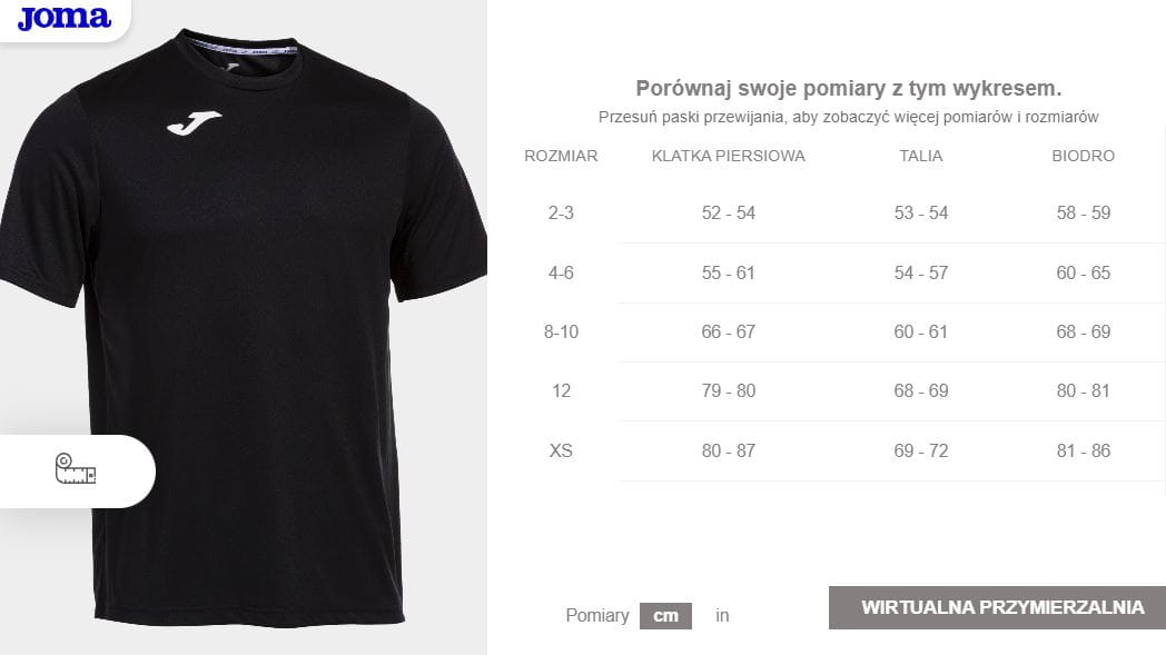 WYMIARY ORIENTACYJNE (A - Szerokość pod pachami w cm ; B - Długość całkowita pleców w cm)
